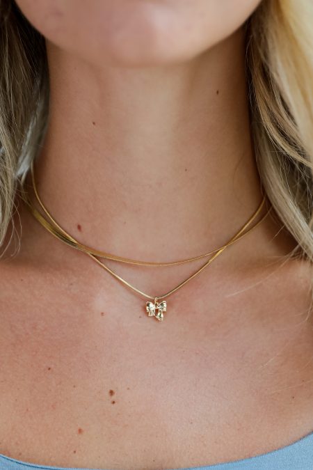 FINAL SALE – Skylar Gold Bow Charm Layered Snake Chain Necklace